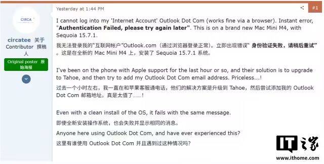 法增加 / 登录 Outlook 等微软个体邮箱账片面 Mac 用户反应苹果邮件 Mail 使用无户