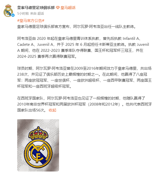 起正在皇家马德里青训系统执教阿韦洛亚自 2020 年,Cadete A、Juvenil A曾先后执教 Infantil A、, 月起担负卡斯蒂亚主老师并于 2025 年 6。nil A 时刻执教 Juve,队夺得联赛、国王杯和冠军杯三冠王他正在 2022-2023 赛季率,5 赛季再次取得联赛冠军并正在 2024-202。