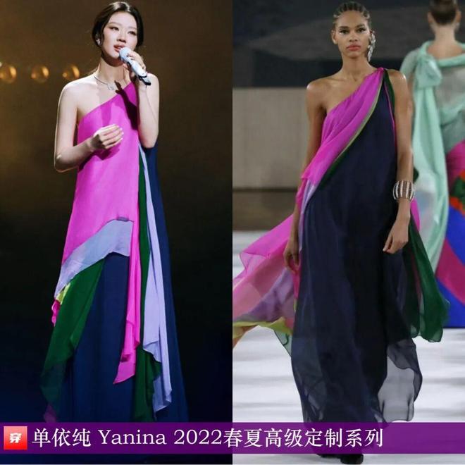 依纯单,5大湾区片子音笑晚会「湾区升明月」202。na 2022春夏高级定造系列层叠渐变薄纱单肩征服:Yani。