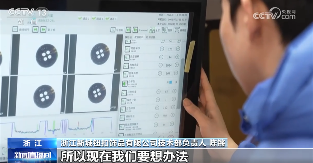 锵:这是咱们两个月前刚引进的一台AI新机械浙江新城钮扣饰品有限公司手艺部担任人 陈,多引进极少自愿化设置以是现正在咱们要念主张,高效加倍。