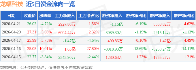 星讯息证券之,4月21日收盘截至2026年,6)报收于26.02元龙蟠科技(60390,.72%下跌4,2.77%换手率1,.18万手成交量72,.74亿元成交额18。