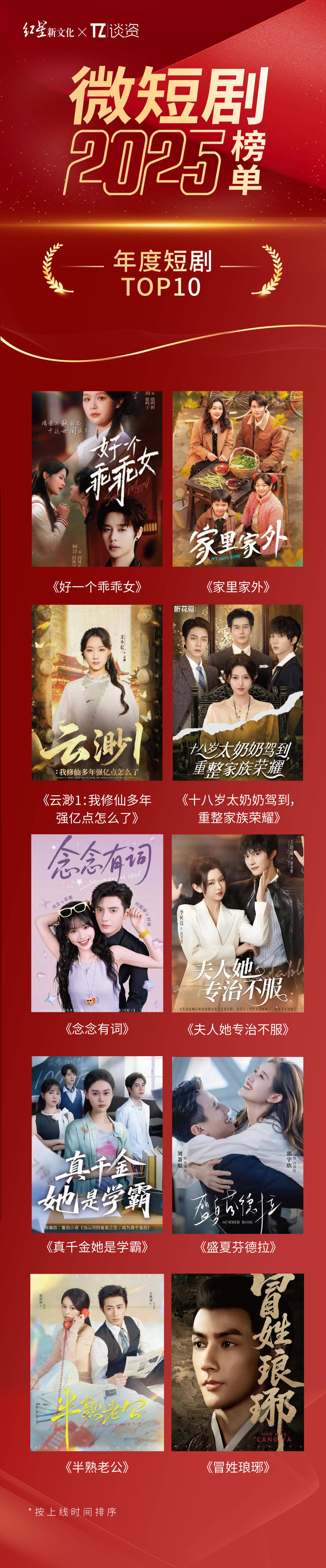 、行业商榷度与实质改进性基于播放显示、市集影响,动讲资编纂部红星新文明联,微短剧2025榜单”正在1月15日揭橥“,、最有人命力的赛道中梳理正在影视界限最炎热,眼的他们显示最抢。