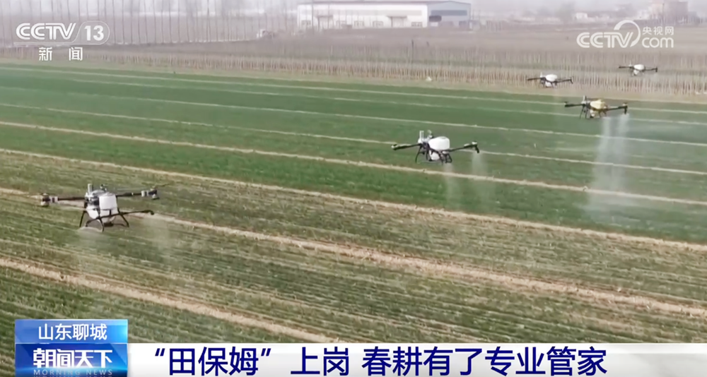 道吴官屯村的高圭臬农田里正在山东聊城茌平区兴盛街,施肥机穿梭此中六台自走式幼麦,麦苗施肥为返青期。屯乡潘西村的田间而正在不远方的杨官,人机腾空而起多台植保无,防功课展开飞,洒杀菌剂平均喷。间执掌这些田,会化办事形式“田保姆”托管办事举办的都是依托本年表地鼎力扩展的农业分娩社。
